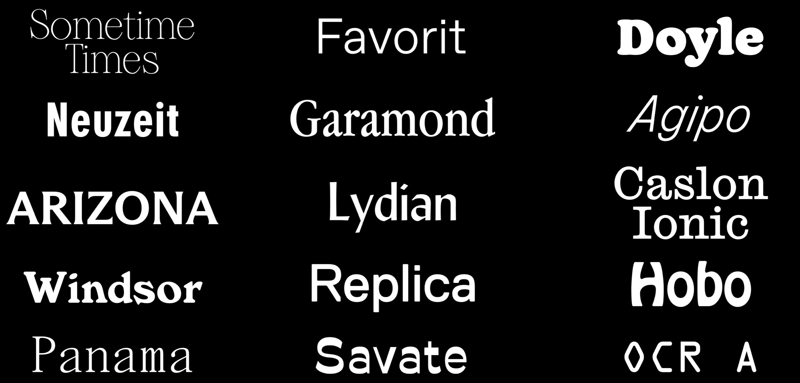Above are a selection of typefaces for potential future releases. The typeface chosen should be set as large as possible on the artwork. This consistency will maintain a visual language across releases.